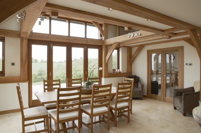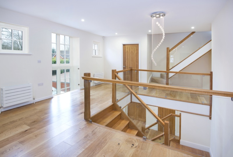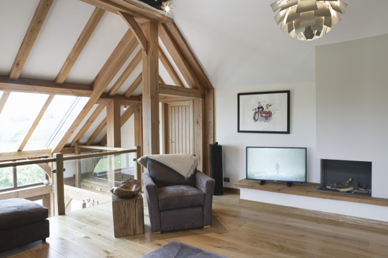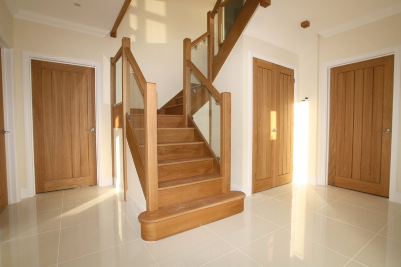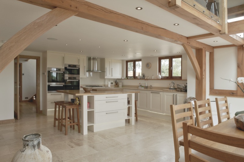 Kitchens, bathrooms, staircases, wardrobes, log stores and features of the like are all designed with the client at the site as the build is going up. This has included furnishing such as desks and dining tables to be made from the same oak as the doors, skirts, stairs etc so that the same theme follows throughout.